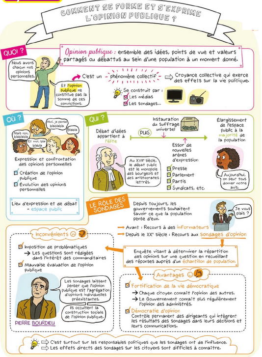 Ce premier chapitre de science politique va nous permettre d’étudier le concept d’ opinion publique dans une perspective historique. Nous nous pencherons ensuite sur la question des sondages et de leur pertinence comme mesure de l’opinon publique. Enfin nous étudierons l’influence qu’exercent les sondages sur la démocratie et l’exercice de la vie politique.