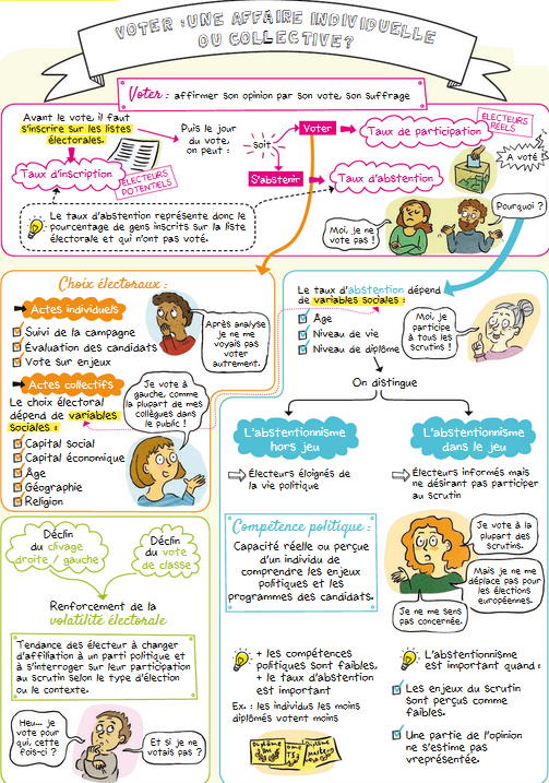 Ce deuxième chapitre de science politique va nous permettre d’étudier dans un premier temps la participation électorale, pour montrer qu’elle relève à la fois de logiques sociales et contextuelles. Il expose ensuite les logiques collectives de l’orientation électorale, avant de s’intéresser à l’articulation entre l’individu et le collectif à partir des explications de la volatilité électorale.